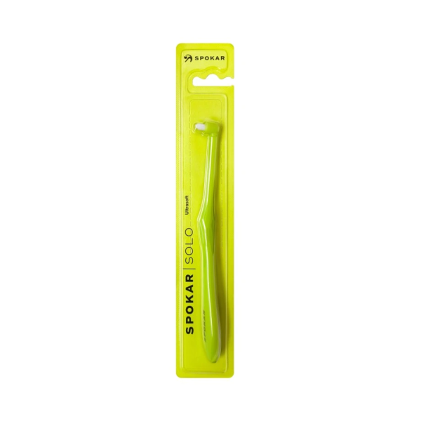 Монопучкова зубна щітка SPOKAR SOLO – ідеальний інструмент для ретельного очищення зубів у місцях, куди звичайна зубна щітка не може дістатися. Вона має невелику головку з одним пучком надтонких волокон, що забезпечують дбайливе, але дуже ефективне очищення, не подразнюючи ясна.