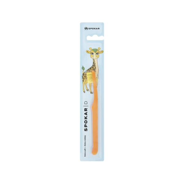 Зубна щітка ДИТЯЧА D Spokar екстрам’яка, помаранчева ручка / жовта щетина (від 0 до 6 років)