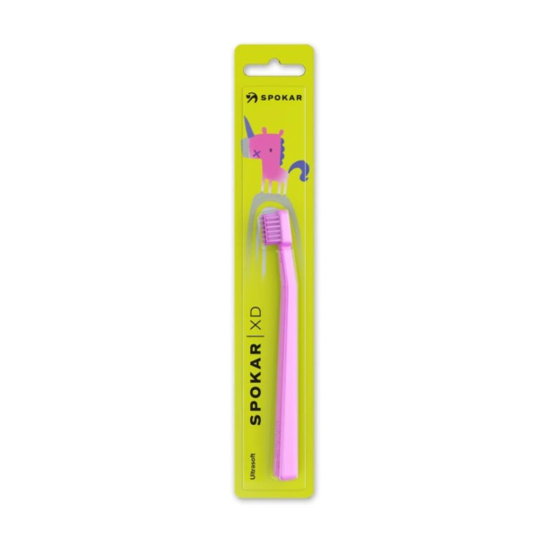 Дитяча зубна щітка SPOKAR XD є ергономічним та функціонально витонченим продуктом, розробленим для дітей від першого чищення зубів до переходу на зубну щітку для дорослих, поєднуючи якість, безпеку та грайливий дизайн.
