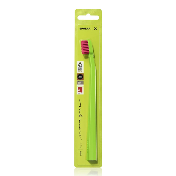 Зубна щітка Spokar м’яка (Soft) зелена ручка / рожева щетина