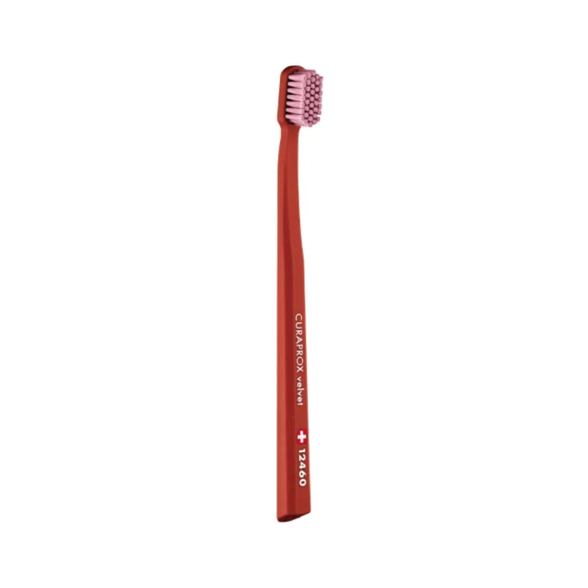 Зубная щетка Velvet (12460) коричневая ручка/розовая щетина CURAPROX