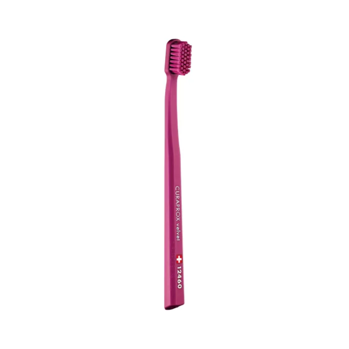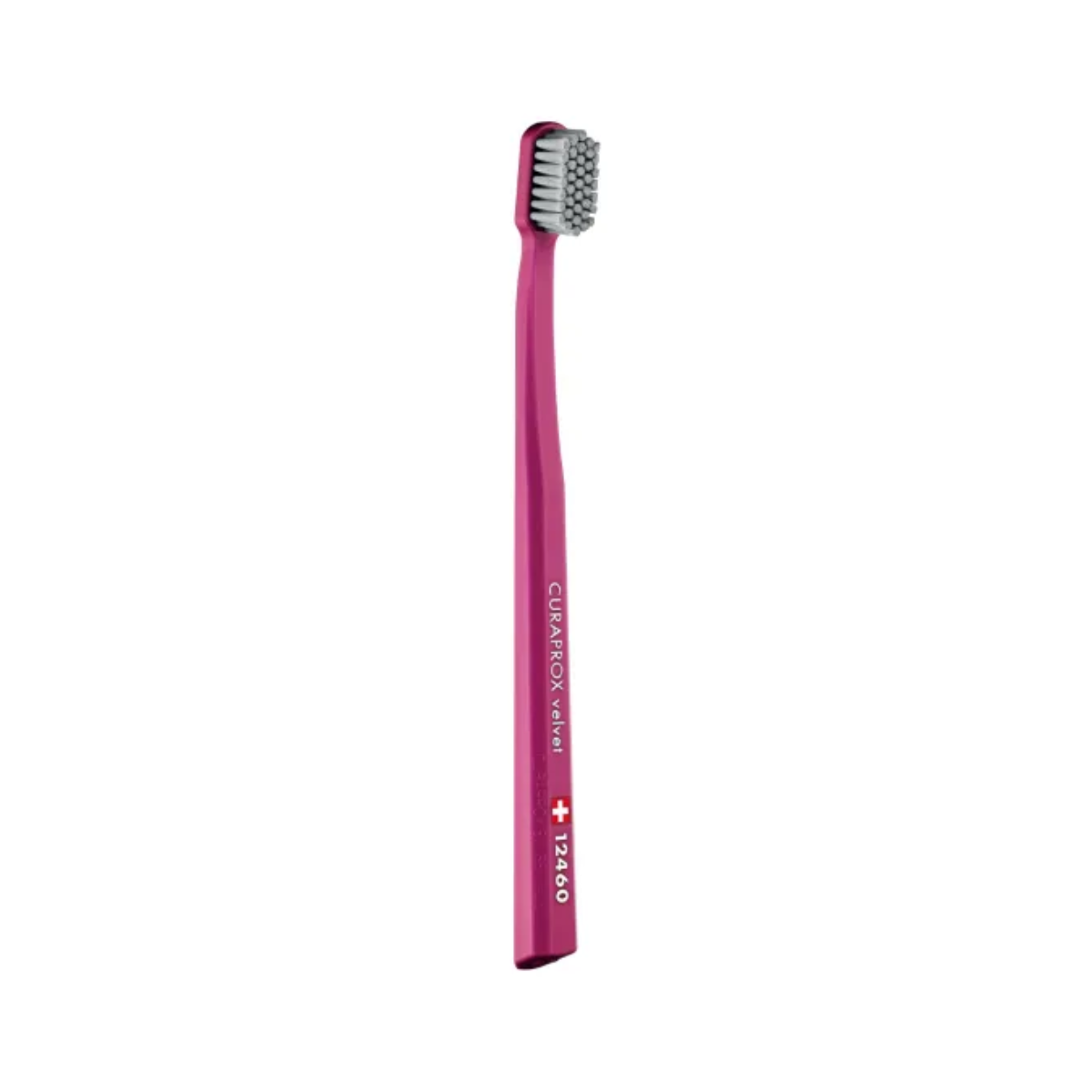 Зубная щетка Velvet (12460) пурпурная ручка/розовая щетина CURAPROX