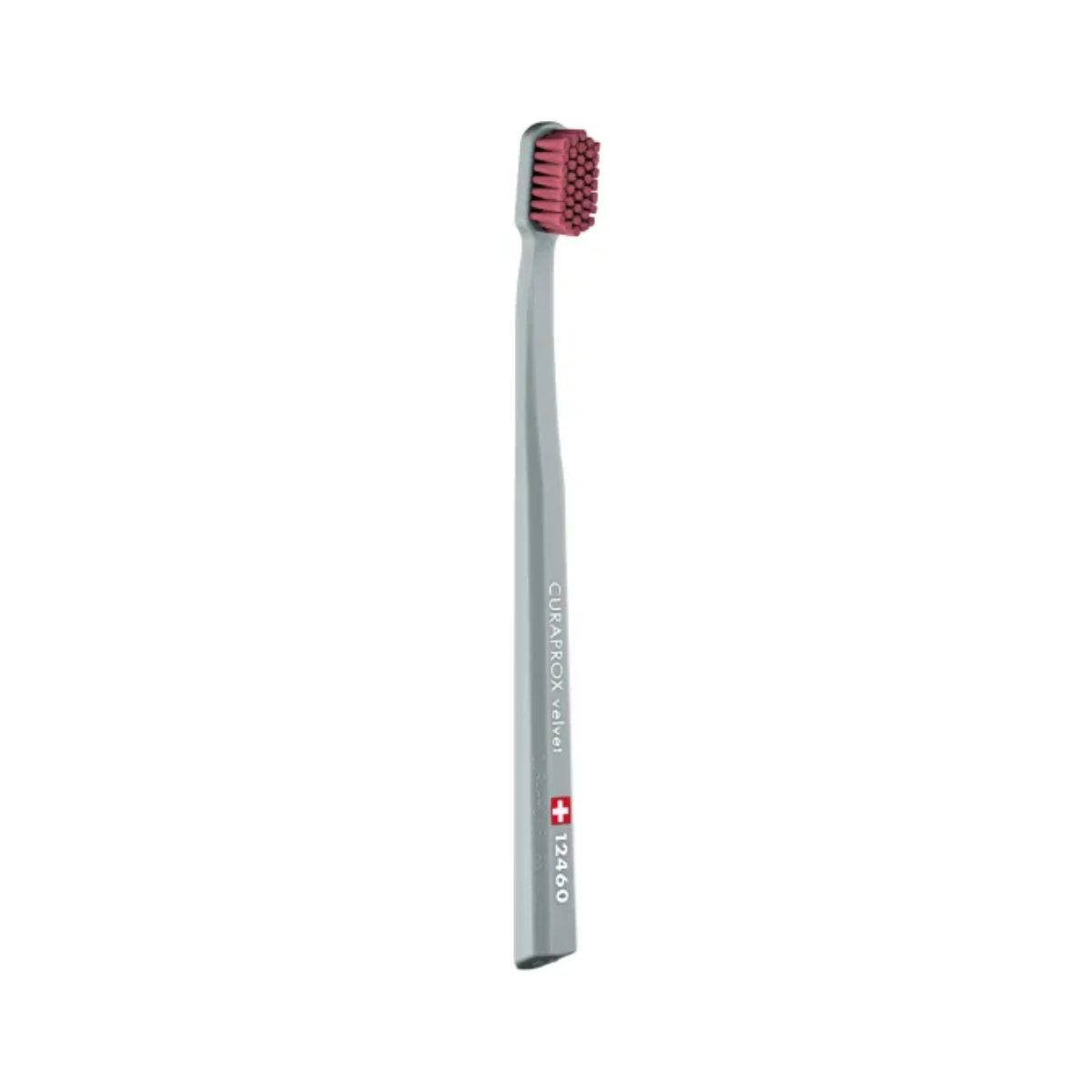 Зубная щетка Velvet (12460) темно-красная ручка/серая щетина CURAPROX