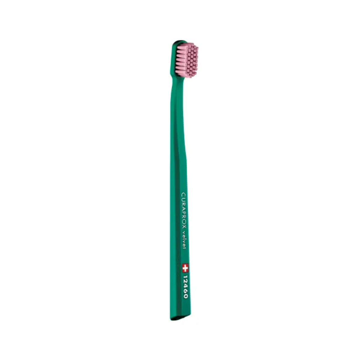 Зубная щетка Velvet (12460) темно-зеленая ручка/розовая щетина CURAPROX