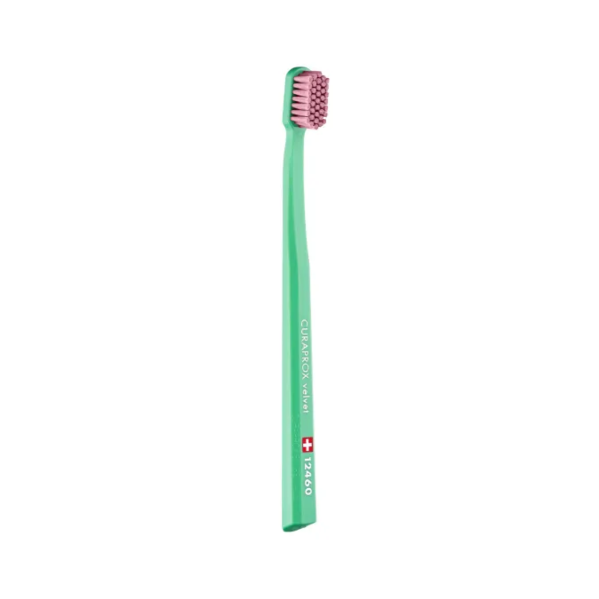 Зубная щетка Velvet (12460) светло-зеленая ручка/розовая щетина CURAPROX