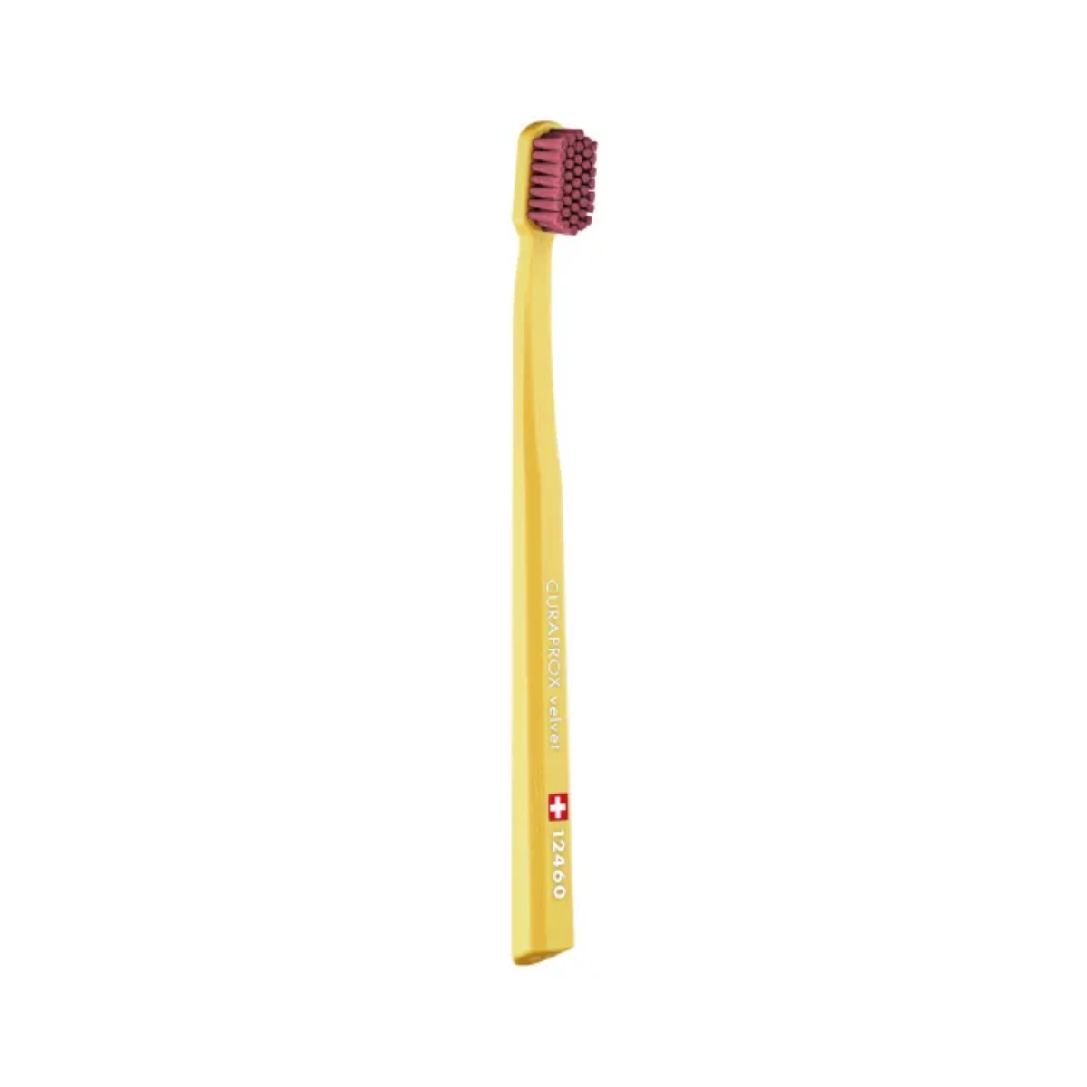 Зубная щетка Velvet (12460-15) желтая ручка/пурпурная щетина CURAPROX