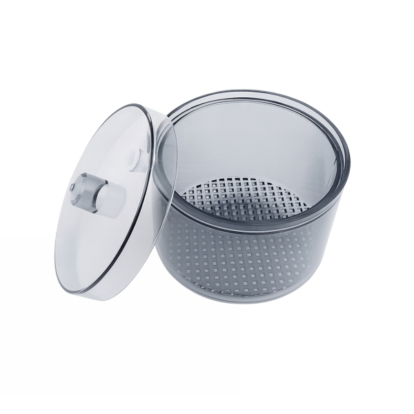 Бокс с крышкой предназначен для замалчивания боров в дезинфицирующих средствах. Внутренняя вставка в виде сита обеспечивает удобное извлечение инструментов из дезраствора, а также исключает контакт раствора с руками.